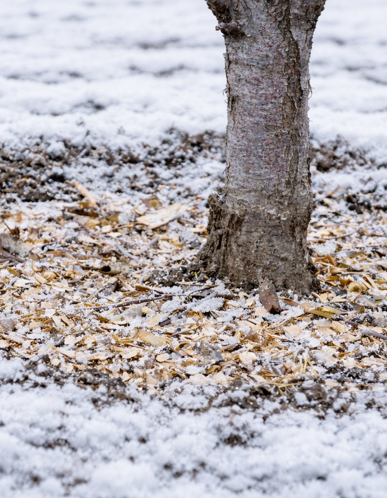Rötterna är ofta den mest utsatta delen av trädet under vintern. Kyla, markpackning och upprepade frysnings- och upptiningscykler kan skada rotsystemet.